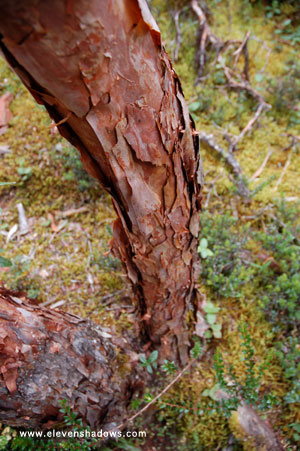 The papery peelable bark of a quinoa tree, El Cajas. |