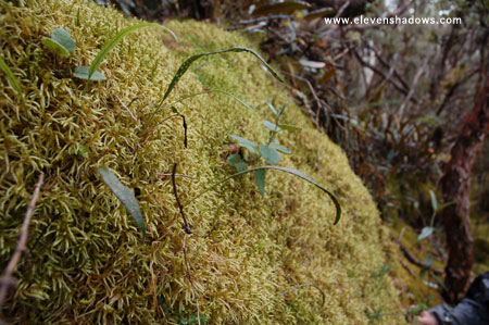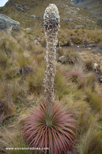 This plant is a member of the pineapple family. A myth has it that this is the well-endowed chumulongo sleeping on his back. El Cajas. |