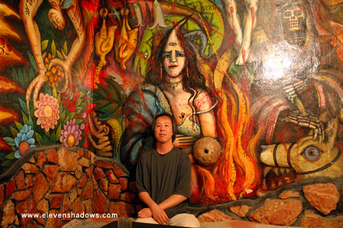 Striking my serious artist look at Prohibido Centro Cultural. Several photos from Cafe Prohibido that some may find deeply offensive can be seen on a separate page. |