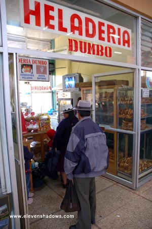 Heladeria Dumbo (Dumbo ice cream store). No, it's not in Chordeleg. Y'see, I lied. We never went to Chordeleg. This is in the bus station in Cuenca. |