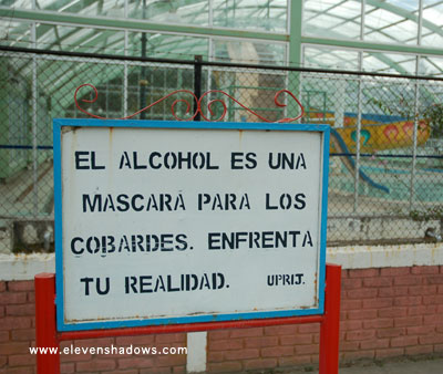 An interesting sign in Parque Jipiro in Loja, which translates roughly to: "Alcohol is a mask for cowards. Confront your reality."