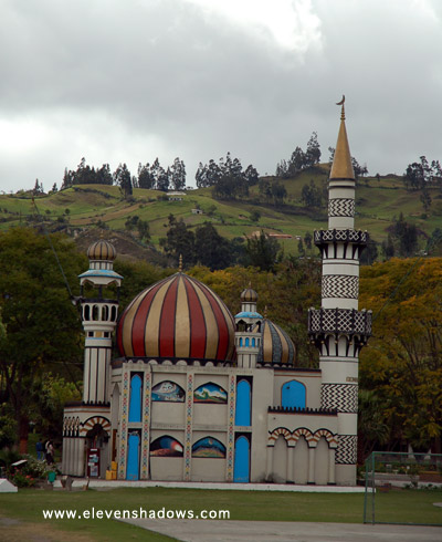 Parque Jipiro, Loja. This fun park includes miniature reproductions of buildings from around the world, including St. Petersburg Cathedral, Chinese temples, African huts, and Mayan pyramids. The mosque shown here houses a children's planetarium. |