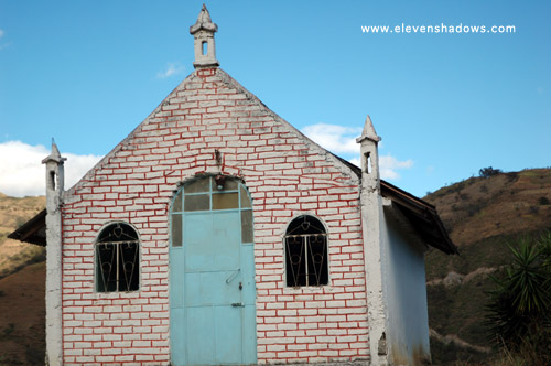 Vilcabamba. After eating the Rumi Wilco's homemade granola, fresh yogurt from the organic crepe place in the main square, and fresh fruit, we set out on horse for the waterfall on a trip that took us near Podacarpus National Park. This is a small church on the first part of the route up to the waterfall.