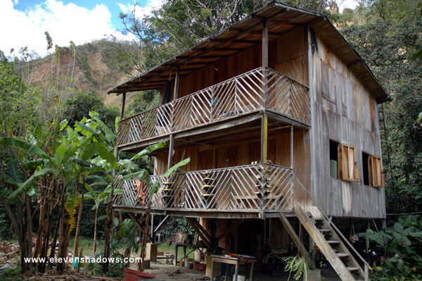 The main house at Rumi Wilco Nature Reserve, where Orlando and Alicia Falco live. Orlando built this house over 25 years ago when they first purchased the property and turned it into a nature reserve. This house, like the pole house, are on stilts because they sit in a flood plain. The Río Chamba has only overflowed once in the 25 years that the Falcos have been there, but that was a terrible flood that left fish wiggling on their property, and badly damaged the cement bridge that extends over the Río Chamba, leading to Rumi Wilco. |