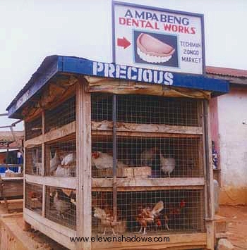 for a dentist in Techiman, Ashanti Region, sitting atop a chicken coop.