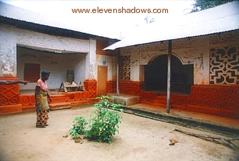 numerous Abosomfie shrines, including the refurbished Besease Shrine (left). |