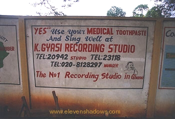both of which hadfascinating artifacts of the Ashanti.~~ Left, an advertisement on the way to the Cultural Center, Kumasi. |