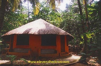 My thatched-roof bungalow at the Ankobra Beach Resort, a