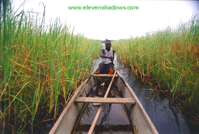 He told me that his ancestors fled from Mali around the 14-15th Century on foot, following their god who had taken the form of a snake. Their enemy still close behind even though they had fled all the way to Ghana, the snake led them to the Amansuri Lagoon. Their enemy followed them, but the two rivers that converge on the lagoon suddenly swelled together, killing all of their enemies instantly. The Malian refugees felt that the lagoon was the one safe haven left to them, and chose to settle on the lagoon by constructing stilt houses. |
