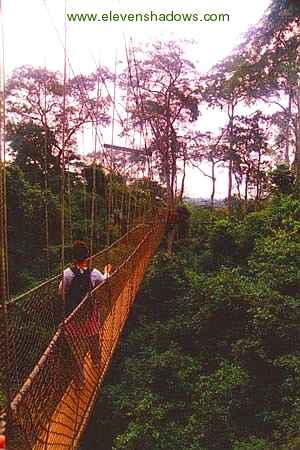 the trees in the wood-and-rope canopy walkway in Kakum National Park,