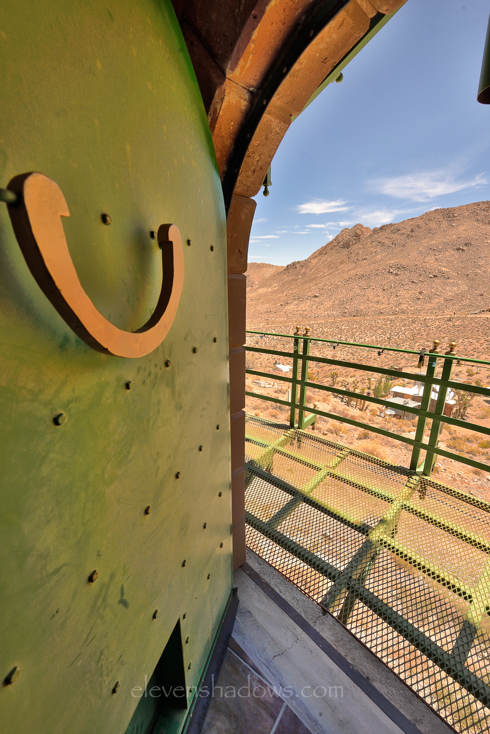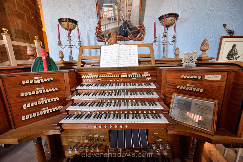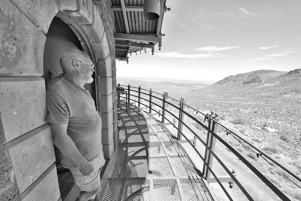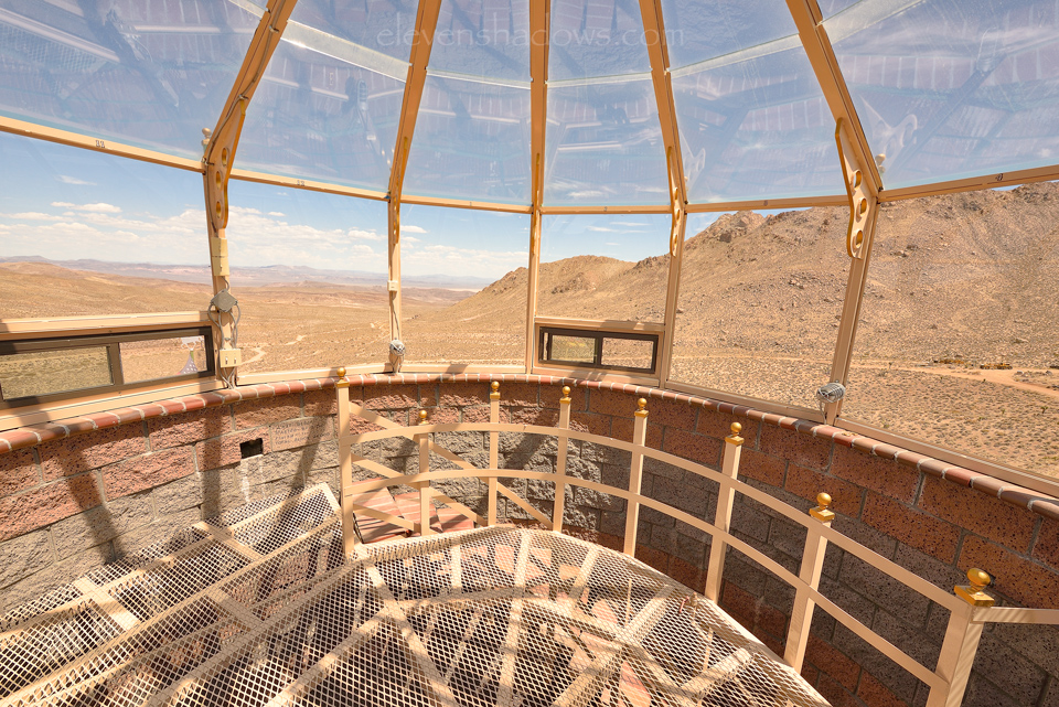 The four-story, 8,000 square foot fortress has 16-inch walls and was built with 24,000 bricks, over 1000 yards of concrete, and more than seven tons of rebar. The mostly circular citadel is entirely powered by wind and solar, with redundant back-up generators. The estate has a theater and casino game room, auto and wood shops, four bedrooms and three full baths, two kitchens, and a great room with two working pipe organs. Mr. Johnston offers guided tours of the castle and shares his thoughts and dreams of building in the desert.