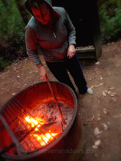 Lisa gets a fire going while I screw around with the camera. Are you seeing a pattern here? |
