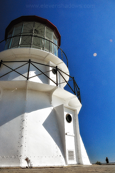 This is that lighthouse. However, this isn't Cape Mendocino. Progress caught up the lighthouse. The actual light was moved, and only the tower remained, where it was ravaged by vandals, and due to crumbling cliffs, threatened to tumble off the cliff into the sea. In 1998, the Cape Mendocino Lighthouse Preservation Society moved the tower to Shelter Cove, thirty miles south of Cape Mendocino.
