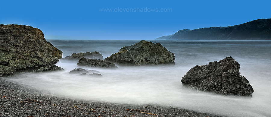 Black Sands Beach doesn't really have very much sand. Lots of well-worn black stones that make loud crunching noises underfoot, but not much sand until you walk farther north along the Lost Coast Trail. I was looking forward to trying some long exposure photography here the following morning, my first attempts at long exposure photography by the ocean. |