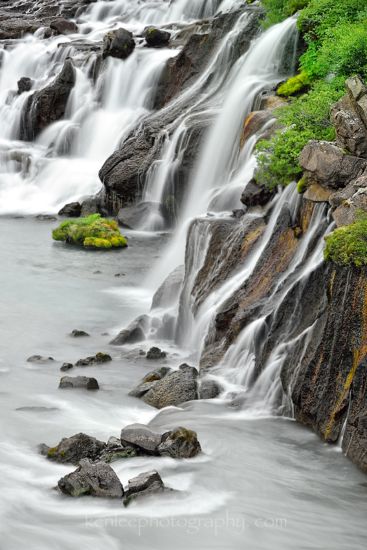 Barnafoss Waterfall Side View 1 (2016-06-19 16:19)Barnafoss Waterfall is really a series of rapids, spread out over quite a distance before tumbling into the Hvítá River. The river was forced through a narrow rocky chute that apparently once had a natural bridge spanning across it. The meaning of this waterfall translates into "Children's waterfall" from one of the tragic sagas. Nikon D610/Nikkor 28-300mm. 1.3s f/9 ISO 100. |