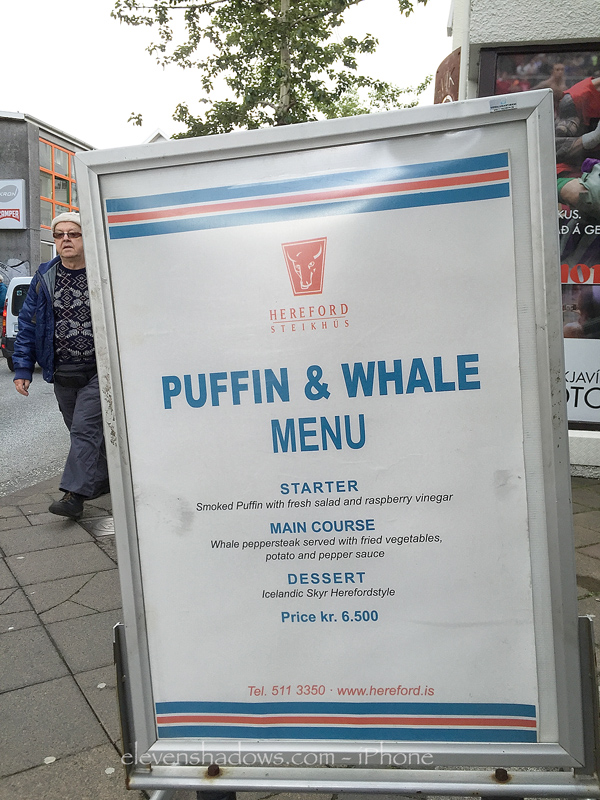 Puffin and whale menu at Hereford Steikhus, Reykjavik. iPhone photo. |