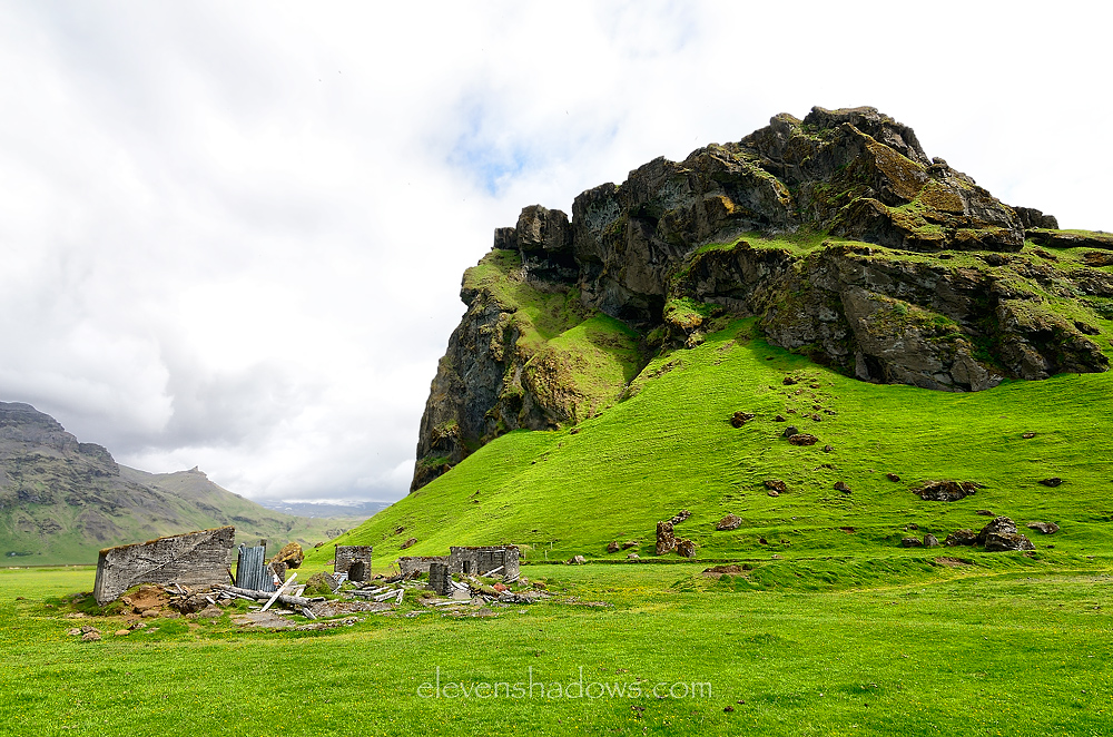 I had arranged for a rental car/car tour for the next several days through Iceland Road Tour Travel Agency. I liked this. I was free to go, stop, do whatever, and it felt really great to have this amount of latitude. If I go back to Iceland again, I would seriously consider getting a camper such as Go Camper so I could also sleep wherever I wanted as well. Iceland is rather free about letting you pull over somewhere and go to sleep in a camper. When I rented the car, I was given a flat plastic thing. This was the key. I looked everywhere where I would expect to insert a key. Nothing. I finally asked the guy. It was somewhere in the middle of the dash. After that, it was a matter of getting used to this really small car with very sensitive breaks. But after about five or ten minutes of driving it, no problem. I was gone, and it was good. I had a long day ahead, full of many many attractions packed into the first day. And I was bent on doing them all, although I wondered how long it would take. Turned out...all day. Green Hills and Ruin (2016-06-22 05:44) |