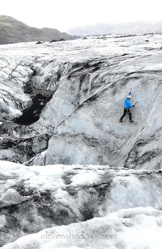 Climbing The Glacier (2016-06-22 2:24 pm)For the second part of the trip, I rented a Renault Clio and explored the more often-visited south part of Iceland. One of the highlights of the jam-packed first day was a glacial walk on Eyjafjallajokull Glacier, also known as Eyjafjalla or Eyjafjallajökull Glacier. We donned crampons and straps for safety. No, I didn't climb, but I did have a pick-axe. Nikon D7000/Tokina 11-16mm f/2.8. 1/250 f/8 ISO 200. |