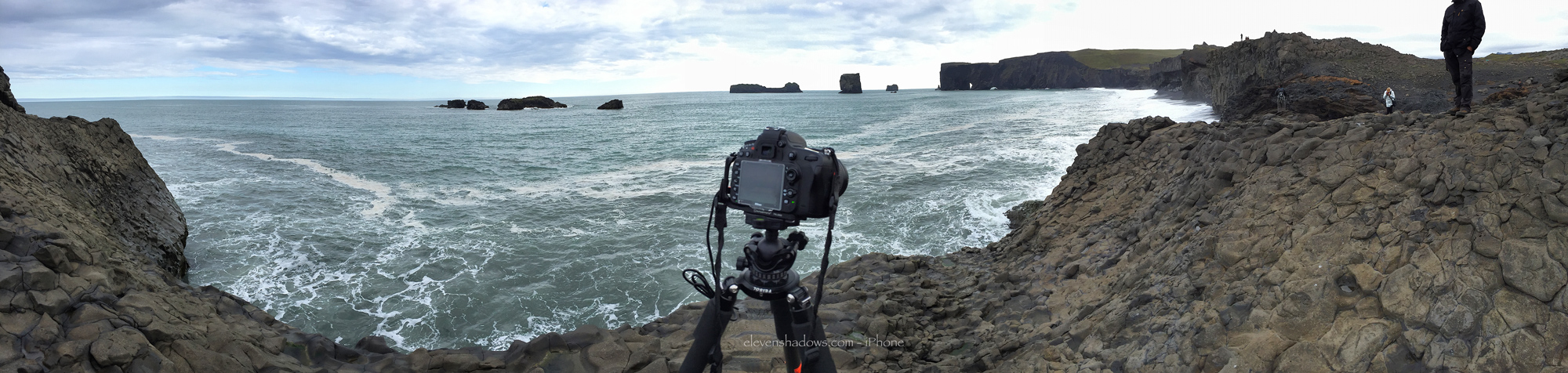 A sneak peak behind the making of a long exposure photo along the coast. iPhone panorama photo. |