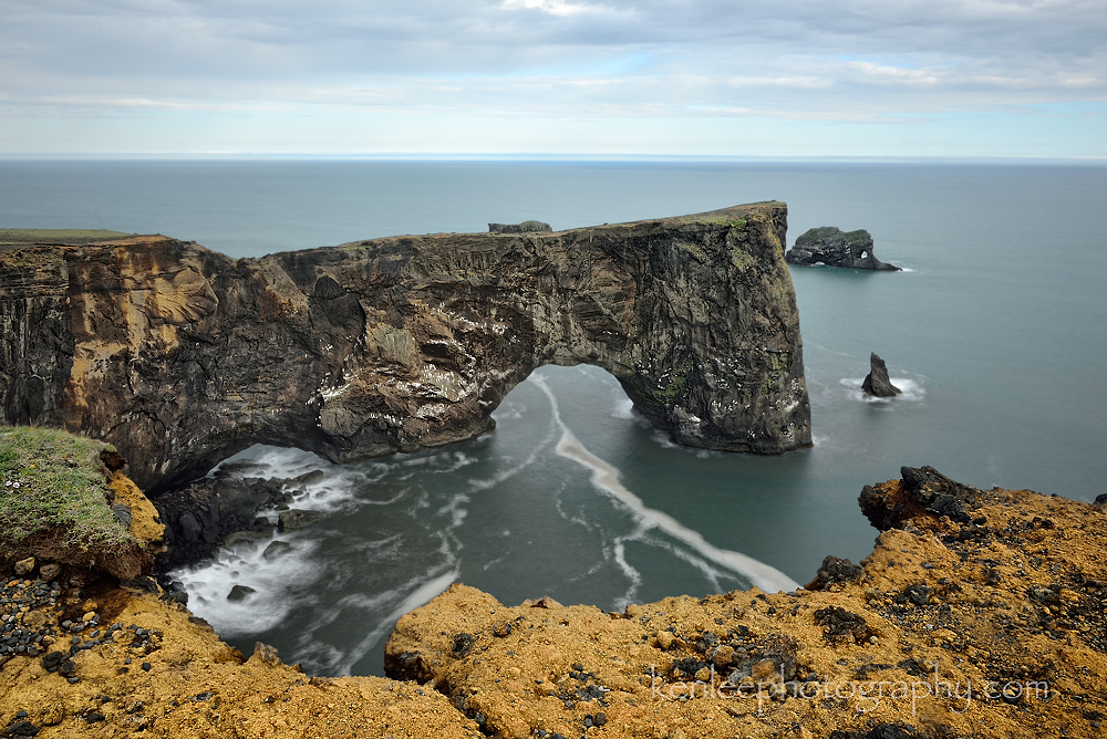 The Arch With a Hole (2016-06-22 19:01)Dyrhólaey, south Iceland. Dyrhólaey is about 170 km from Reykjavík city, and very close to the small town of Vík (the southern most village in Iceland). Dyrhólaey is a small peninsula or promontory but was formerly an island of volcanic origin. Dyrhólaey got its name from the massive arch that the sea has eroded from the headland (the name literally means "door-hole"). The area offers great views, a lighthouse, and lots of wind. I shot with a long exposure of 6 seconds to smooth out the water a bit for a slightly surreal kind of feel, which I always love. Nikon D610/Nikkor 28-300mm. 6s f/22 ISO 100. |