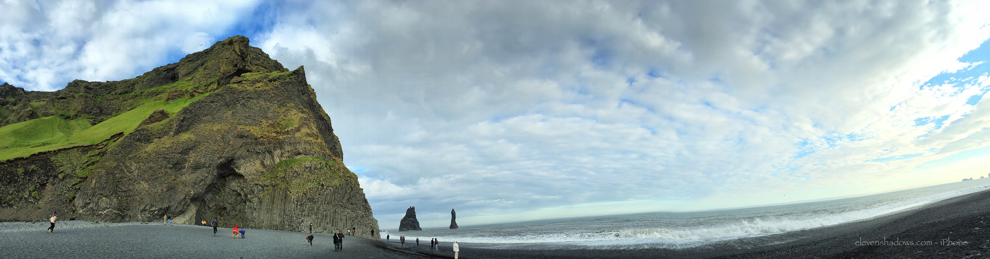 This was taken on the black sand beach near Vik. For some reason, my right knee, which I had surgery on, suddenly started hurting badly for no apparent reason while I was walking on the cold, windy beach. Was it the weather or all the mileage? Regardless, I kept on walking, albeit much slower, and suddenly, it stopped hurting. And yes, yes, this photo is really crooked. I'm not always the smoothest with iPhone panorama photos. But it looks cool, so hey.... |