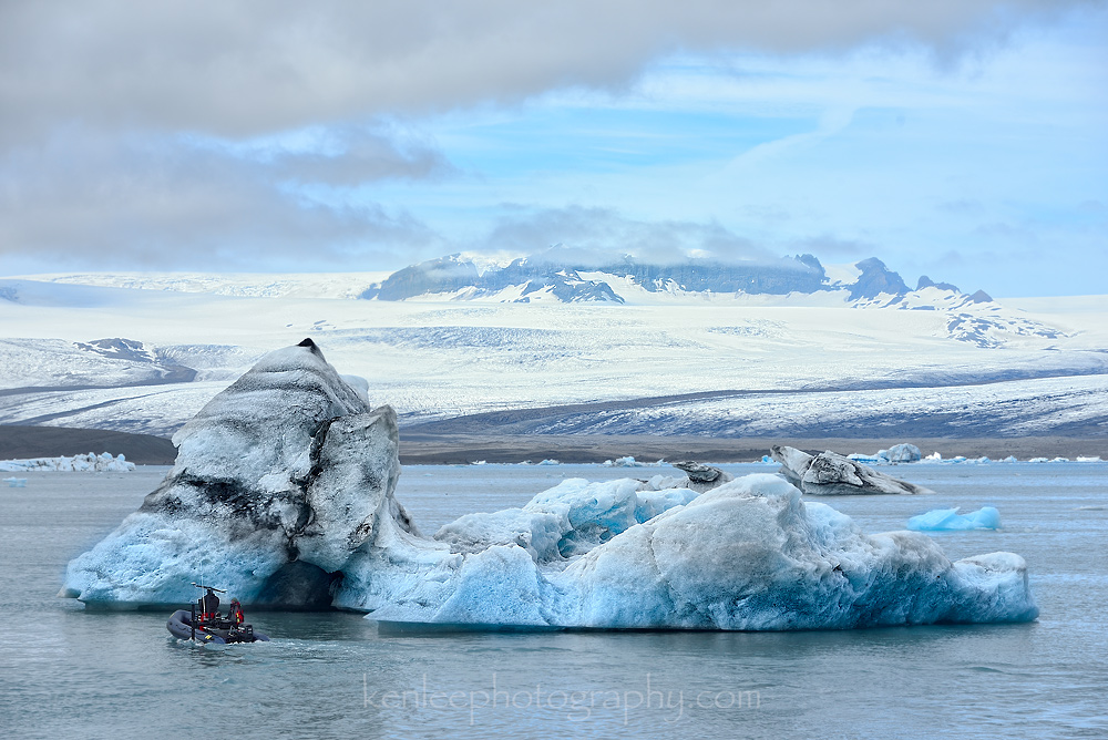The Ice in Iceland (2016-06-23 17:07 03)A small boat explores the amazing Fjallsárlón Glacier Lagoon. Although noticeably smaller than Jökulsárlón Glacial Lagoon, one is closer to the glacial tongue (here, it is Vatnajökull Glacier). The lagoon is ethereal in nature, and very quiet and peaceful. 1/640s f/11 ISO 100. D610/Nikkor 28-300mm. |