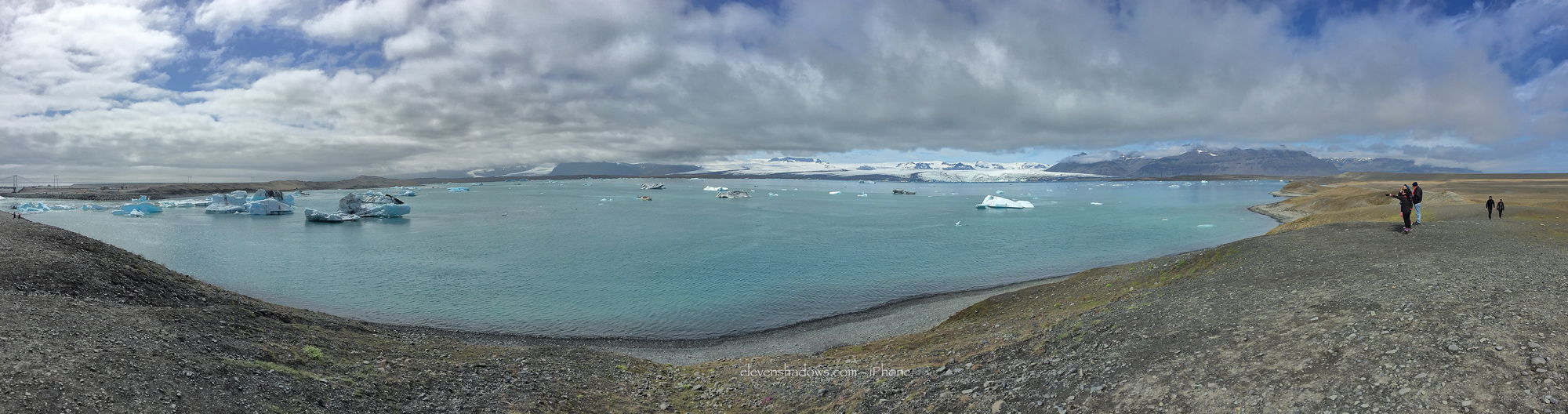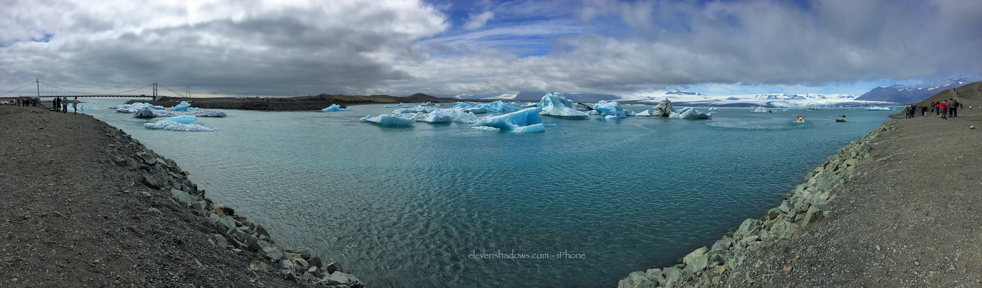 Jökulsárlón, a large glacial lake in southeast Iceland, located below the tongue of the Breiðamerkurjökull glacier. This lagoon is also the deepest lake in Iceland, at over 248 metres (814 ft), as glacial retreat extended its boundaries. The size of the lake has increased to four times its size since the 1970s. iPhone panorama photo. |