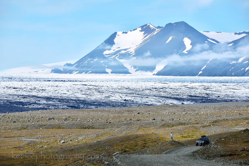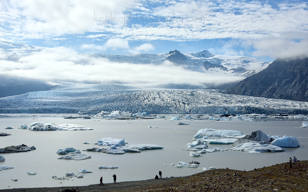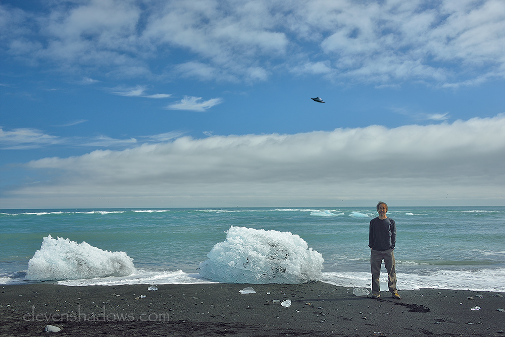 Selfie With An Iceberg (2016-06-23 15:05)Selfie with a glacier chunk on a black sand beach. These massive ice chunks break off from a glacier, drift into Jökulsárlón, a large glacial lake in southeast Iceland, located below the tongue of the Breiðamerkurjökull glacier, eventually floating down to the black sand and the sea. Who knows what other strange things can be seen in South Iceland? 1/640s f/11 ISO 100. D610/Nikkor 28-300mm. |