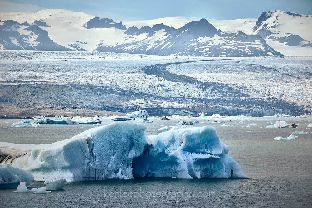 Blue Ice, Blue Ice (2016-06-23 13:55)You're looking at the large glacier chunks of Jökulsárlón, a large glacial lake in southeast Iceland, located below the tongue of the Breiðamerkurjökull glacier. This lagoon is also the deepest lake in Iceland, at over 248 metres (814 ft), as glacial retreat extended its boundaries. The size of the lake has increased to four times its size since the 1970s. 1/800s f/8 ISO 200 D610/Nikkor 28-300mm. |