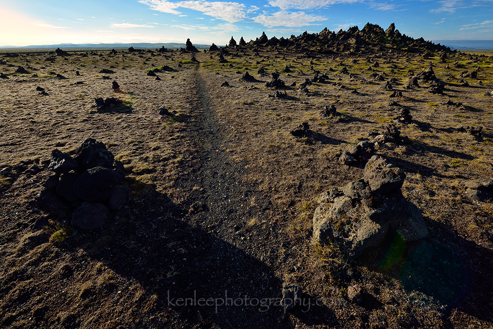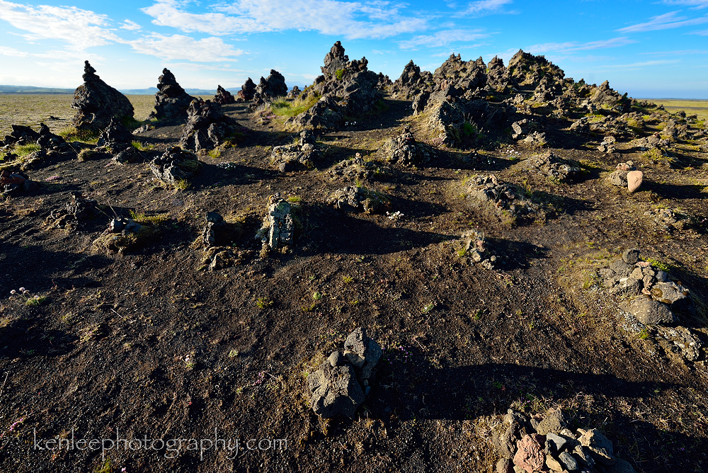 Good Fortune On The Journey (2016-06-23 20:17)Laufskálavarða is a lava ridge, surrounded by stone cairns, between the Hólmsá and Skálmá rivers, close to the road north of Álftaver. There was apparently a large farm known as Laufskálavar that was destroyed in 894 due to Katla volcano erupting. The lava mound was named after the farm. All travellers crossing the desert of Mýrdalssandur for the first time were supposed to pile stones up to make a cairn, which would bring them good fortune on the journey. The Public Roads Administration has moved a supply of stones to the site to enable modern travellers to continue the tradition. I did exactly that. Nikon D610/Nikkor 14-24mm f/2.8. 1/250s f/8 ISO 200. |