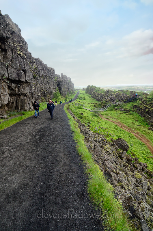 Waking up the next morning, it was rather overcast. It would stay like this for the whole day. I drove from Reykjavik to some of the most popular tourist destinations. After all, these too were worthwhile seeing, beautiful and historically important areas. Þingvellir anglicised as Thingvellir, is a national park in the municipality of Bláskógabyggð in southwestern Iceland, about 40 km northeast of Reykjavík. Þingvellir is a site of historical, cultural, and geological importance and is one of the most popular tourist destinations in Iceland. It lies in a valley created by the boundary between the North American and Eurasian tectonic plates. It's rare that you ever see such an obvious division between tectonic plates. And yes, this means that Iceland is on both the North American and European tectonic plates.