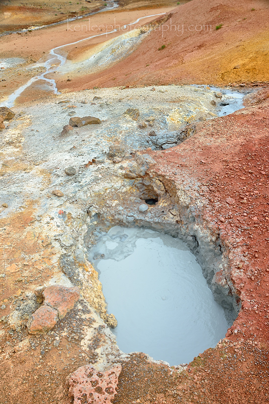 Reykjanes Peninsula, Krysuvik area, looking at a geothermal river. And yes, it really is that color blue, looking like thick viscous paint even though it is really hot spring water. |