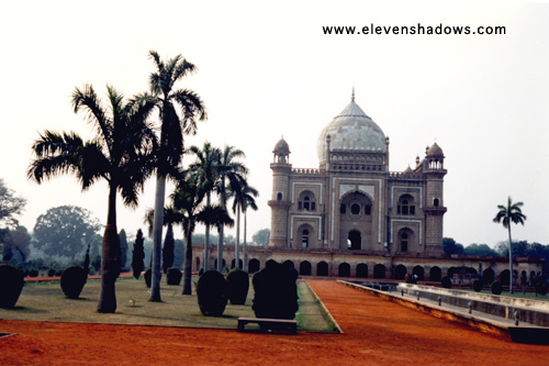 Tomb, New Delhi.Built of red sandstone and buff stone, this tomb is built for Safdarjung, the powerful prime minister of Muhammad Shah who was the weak Mughal emperor from 1719 to 1748, and is an example of late Mughal architecture. |