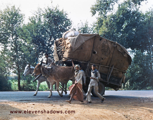I remember being transfixed with how such disparate modes of transportation - burros with overloaded trailers, Ambassador cars, and lumbering trucks - shared the road. |