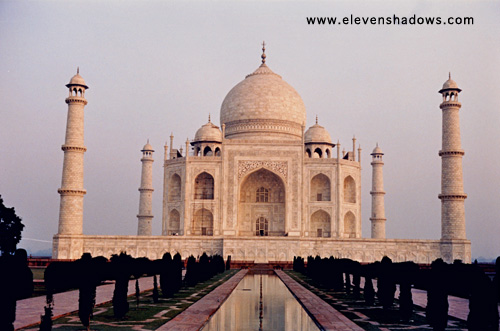 morning at the Taj Majal.Emperor Shah Jahan had it built as an eternal resting place for his favorite wife, Mumtaz Mahal. Construction began in 1632 and was completed in approximately 1648, using 20,000 artisans. The Taj Mahal is arguably the finest example of Mughal architecture, a style that combines elements of Persian, Turkish, Indian, and Islamic architectural styles. The Taj Mahal became a UNESCO World Heritage Site in 1983 when it was described as a "universally admired masterpiece of the world's heritage." Papu was noticeably proud of showing us the Taj Mahal. We heaped praise upon it, as it is truly an amazing work of art. I did make a comment that I instantly regretted, saying that it was actually a bit smaller than I thought it would be, causing Papu some consternation for a moment. More photos of the Taj Mahal closer up on the next page... |