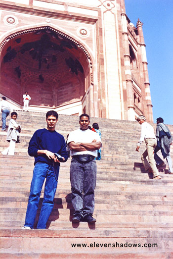 Tom and Oran standing on the steps of the highest gate in India (and one of the biggest in the world), built in 1602 by Akbar to commemorate his victory over India. |