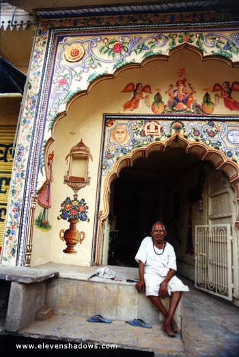 Pushkar is a charming town, with ornate doorways and lots of color. This is a doorway to this gentleman's residence, one of many in the town. |