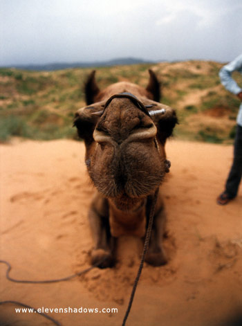 A kiss from a camel. I took a camel safari in Pushkar, riding out to the desert. |