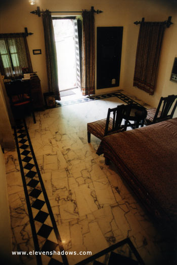 From Pushkar, I pushed on to Jodhpur, where I decided to splurge and stay at the Ajit Bhawan Heritage Hotel. This is my luxurious room, with a dressing room to the left, and beautiful marble floors. The Ajit Bhawan Heritage Hotel was the first Heritage Hotel of India and is "the home of Maharajdhiraj Sir Late Ajit Singhi, the younger brother to the erstwhile ruler of Jodhpur," according to their pamphlet.