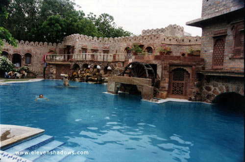 A swim in the pool at Ajit Bhawan Heritage Hotel is very refreshing after walking around villages in the intense summer heat. |