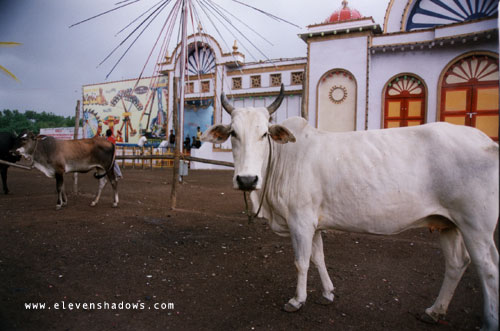 Cows wandering outside an amusement park in Aurangabad. Shortly after I took this picture, the skies let loose a torrent of rain that completely soaked everything within seconds!!
