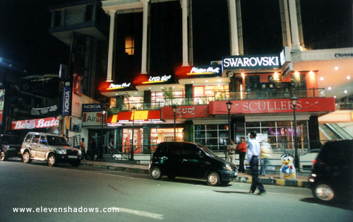 Bangalore is often said to be India's most "Western" city. Here you can see a posh Pizza Hut, a Nokia cellular phone store, and a Swarovski crystal store. |