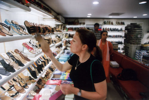 | Lisa checking out shoes in Bangalore. |