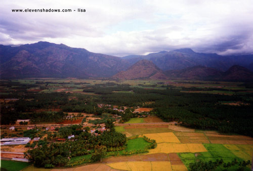 | A view from the top of the hill in Palani from Malaikovil Temple, a popular Hindu pilgrimage center. |