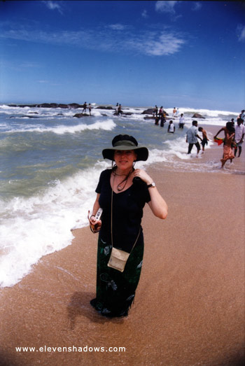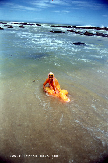 Another pilgrim, this one named Lisa, washing away her impurities in the holy waters of Kanniyakumari.