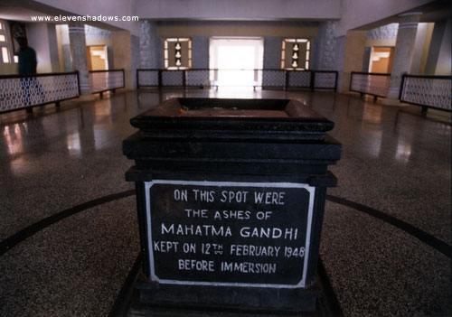 This site is designed so that the sun strikes the auspicious spot where the ashes of Mahatma Gandhi were laid, prior to their immersion in the sea, at noon on his birthday, October 2nd.
