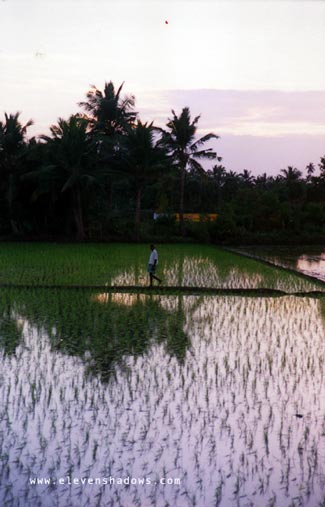 Man in paddy fields south of Suchindram, on the way back to Kanniyakumari.