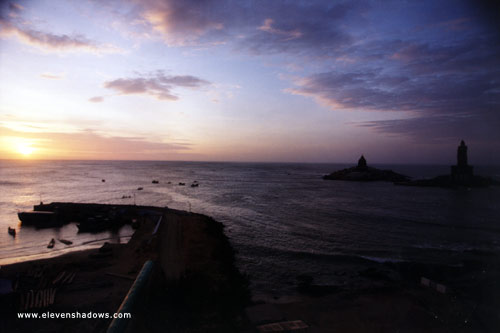Sunrise at Kanniyakumari, as seen from our hotel room. |