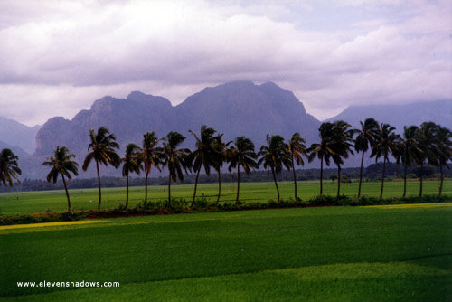 | The gorgeous fields north of Kanniiyakumari, as seen from a train heading north to Trivandrum. |