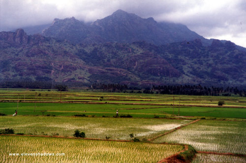 More of the gorgeous fields north of Kanniyakumari, as seen from a train heading north to Trivandrum. |